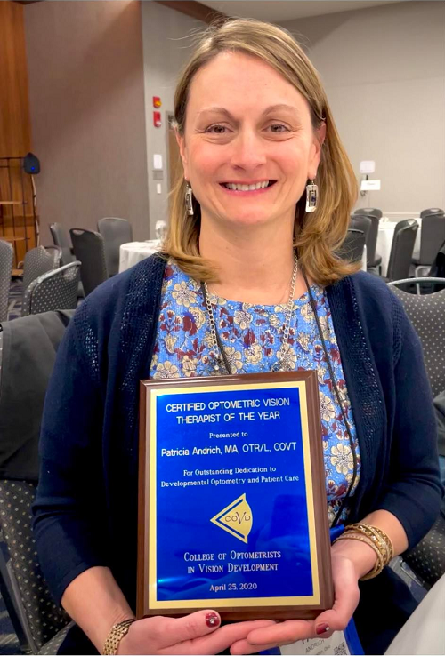 Patti was named, Vision Therapist of the Year 2020, by the international organization, College of Optometrists in Vision Development.